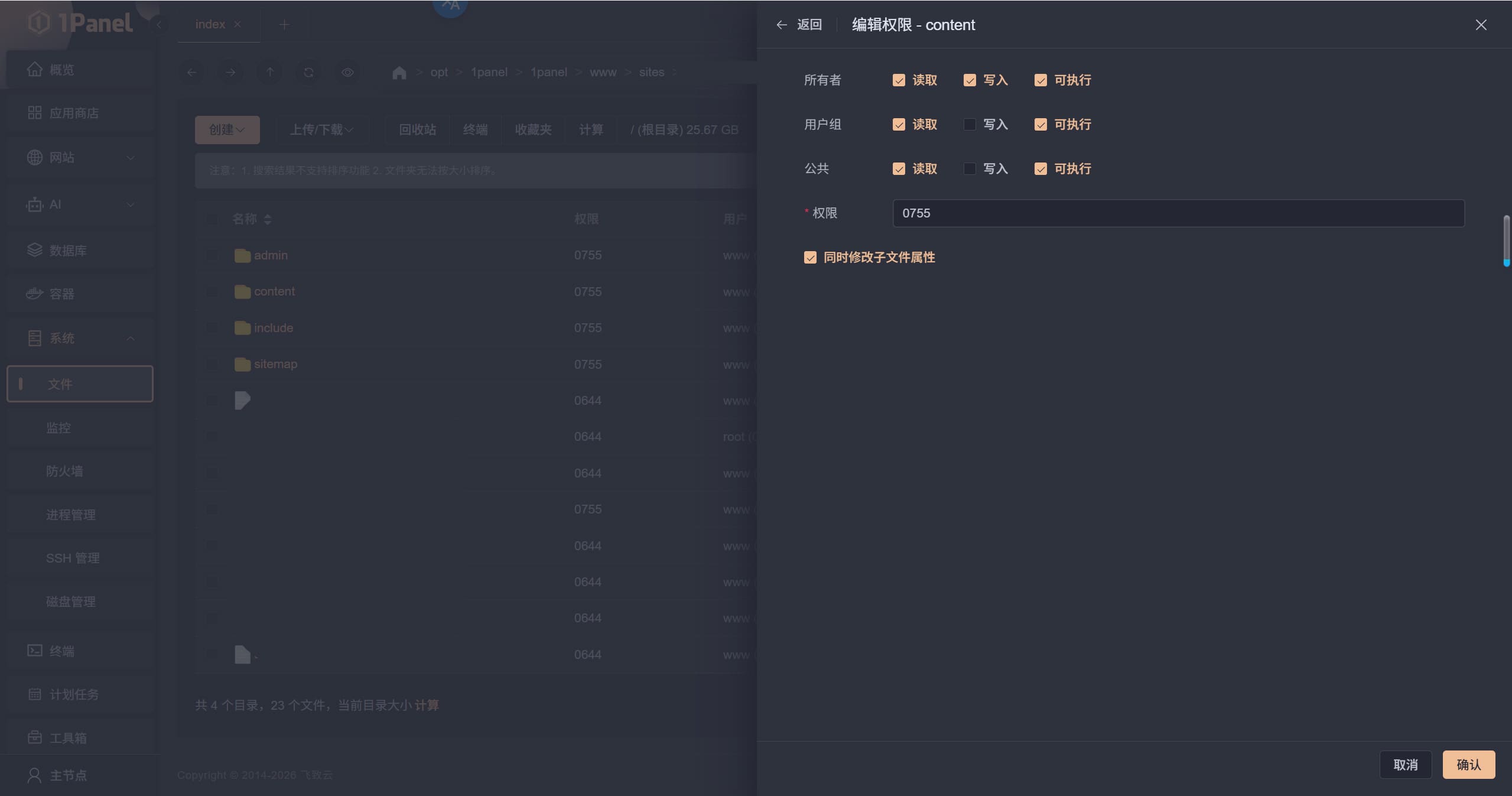 如果出现下图错误,请前往域名根目录,将content文件夹及子文件夹权限设为755 或者 777