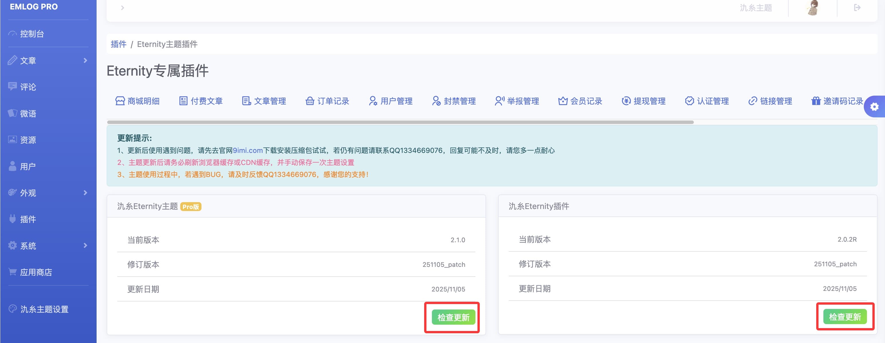 - EmlogPro2.4+(无需付费注册铁杆会员)
