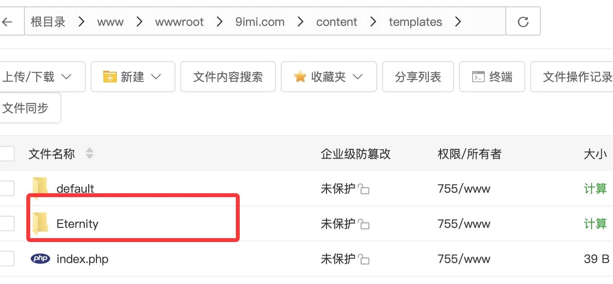 以宝塔面板为例,首先前往下图域名主题目录,删除主题文件夹。