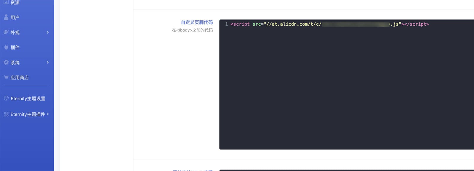 - 进入主题设置 - 常规设置 - 样式代码 - 自定义页脚代码,如图格式填入