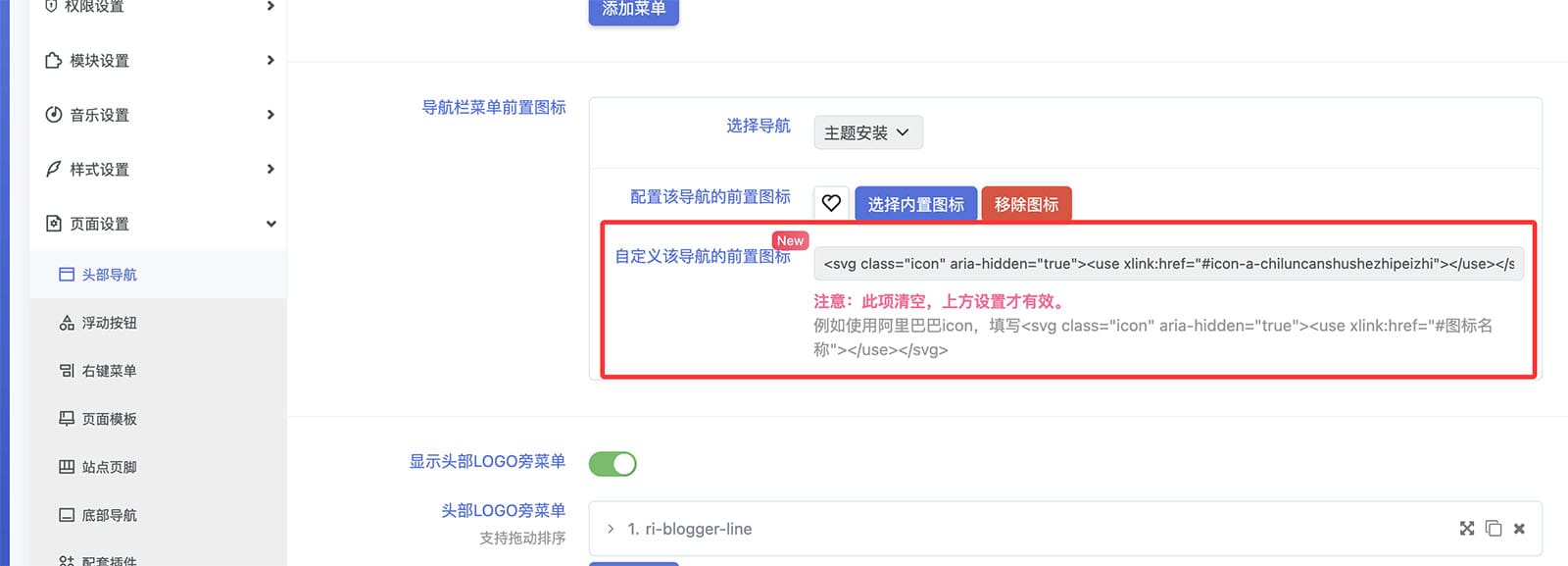 - 进入主题设置 - 页面设置 - 头部导航 - 导航栏前置图标
